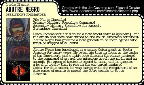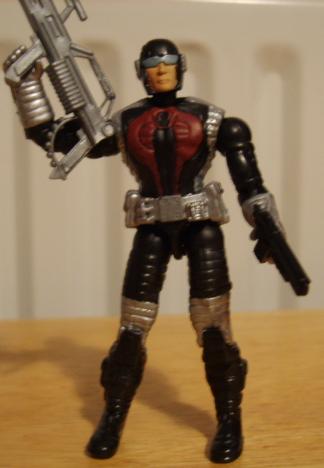 Wanting a commander for each team, I chose Abutre Negro, mainly because the other alternatives were ninjas, lone assassins, or just too weird. He's my favourite of the project, a nice approximation of the original figure using the new parts. The original figure saw the head of Dee-Jay on the Cesspool torso. The V vs. V figures were very useful in the replication of the original design, and I complimented this with versions of his original weapons.