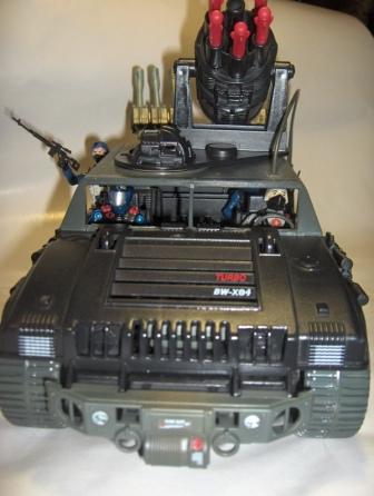 Frustrated with a rash of GI Joe sucess, Cobra has found a need for a heavy artillery vehicle that will work in today's new urban battlefield. The original plan was to convert some of their more high tech H.I.S.S. tanks into urban assault tanks, but all new research and development into that was just too much. Fortunately Cobra has Destro! He has, let's just say ...aquired the aide of a major military supply company to develop a newer, more heavily armed version of the very sucessful and popular Stinger and Stinger Mark II. It has a weight of just over 3.4 tons and an off road speed of 80mph. It can carry 3 fully armed soldiers and sports 2 side mounted 30mm that rotate 15 degrees out. It also totes 6 rear mounted short range R-23 rockets as well as a roof mounted medium range rocket launcher capable of delivering 6 X04 rockets. Cobra has ordered as many as 150 of these Stinger MKIII's to date and will put them on the front line of and urban conflict with the Joes. COBRAAAAA!