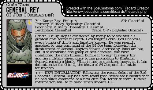 I created the filecard to fit the look of the figure, setting it at some point between issue 44 of the Devil's Due Real American Hero run and issue 16 of America's Elite.