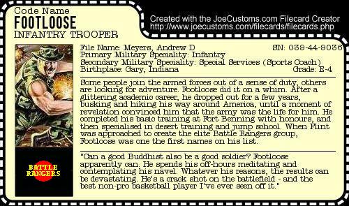 The figure is based on the concept art for the Battle Rangers line, in which he does tend to look a bit like Gung-Ho, and which I've used for the filecard. I've tried to keep it to old-style parts (tried but failed; the waist was ready-painted and it seemed profligate not to use it), and I've used a repainted original head to provide continuity. The weapons are the closest match I can find to those in the picture. He's a basic but serviceable model, in my opinion; now for Dr. Mindbender.