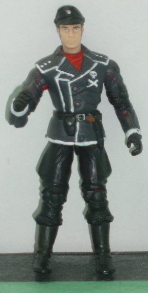 For the Black Major, I revisited my custom of Rip It, from the Joes' alternate Timeframes GP. I admit, I couldn't think of a way to work in a WWII Nazi Rip It into my storyline, but I wasn't going to let this repainted body go to waste! :) A Star Wars Imperial Officer generously donated his head. To change the allegiance of the uniform, I removed the red 'Kobra' sash and added the Red Shadows logo to the breast pocket.