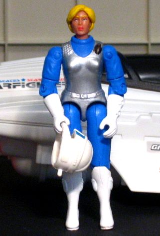 A colleague and an old flame of Greg Scott, aka Robo-Joe, she applied for the team on his behalf. Not only do those Cobra Blackstar pilots have to tangle with Sci-Fi in Zero-Gravity Combat Flight, but they'll have their hands full with Glenda. Look out Cobra! She's one tough cookie, that's for sure.