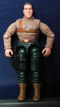 Deadrise is an old custom of mine. I based him off of the unknown character from Computer Complications. If I were to redo him I'd try and fix his arms so they can go down. It kind of fits, however, since he appears to be a tough guy who likes to brawl. I could also get a better color for his shirt. I decided to put him in the Navy because of the picture. Gung Ho-Marine, Rock N Roll-Army, Wild Bill-(air). So the group needed a Navy rep. Then I chose an Engineman since it would fit his personality.