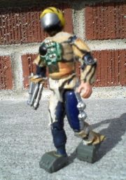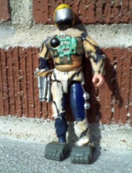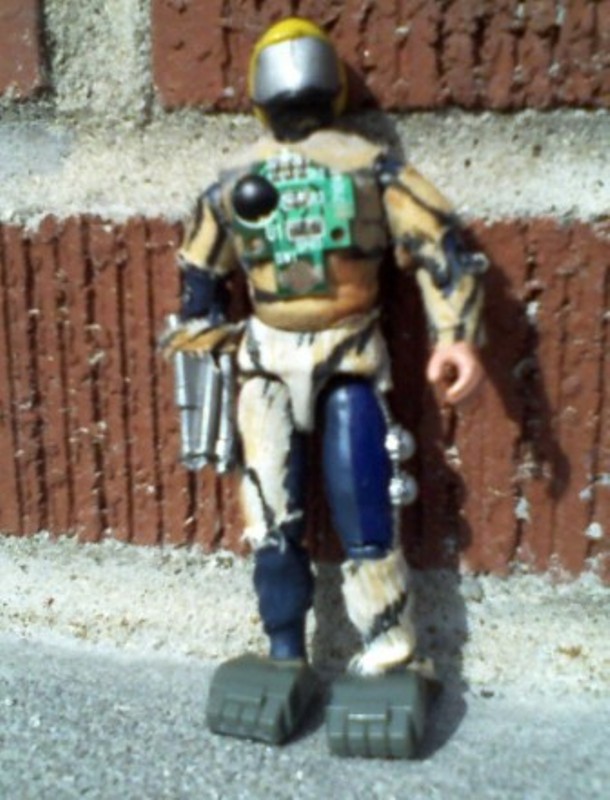 For the head I used a Tiger Force Roadblock helmet and a Cobra Commander face plate..and some electronic parts for the chest cavity.