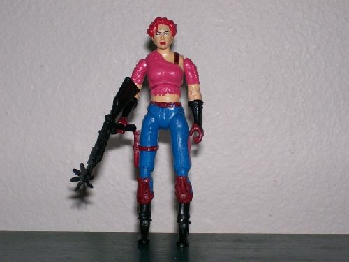 Zarana came about from modding a Star Wars Comic Pack Dark Woman figure. I originally had planned to use the Dark woman head for a Lady Jaye custom, but after looking at the hair style and her facial expression I didn't think it fit the Lady Jaye looks so I just set the head aside. After finishing the Monkeywrench custom I thought I would try to do a few other Dreadnok and after looking through my bag of part I found the Modded head in there. The figure is basically a 25th Lady Jaye Torso with Scarlett boots cut off of another figure and glued onto the lower legs of Lady Jaye. The Shirt, Knife sheath and ripped jeans are all molded out of green stuff.
