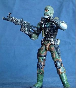 Gave Beach Head new boots and wanted to add a swivel at his boots. Added a clip pouch at the front of his vest to resemble that of original figure of the 80's. Also added smoke grenade next to front pouch and various pouches from Intoyz and BBi.
