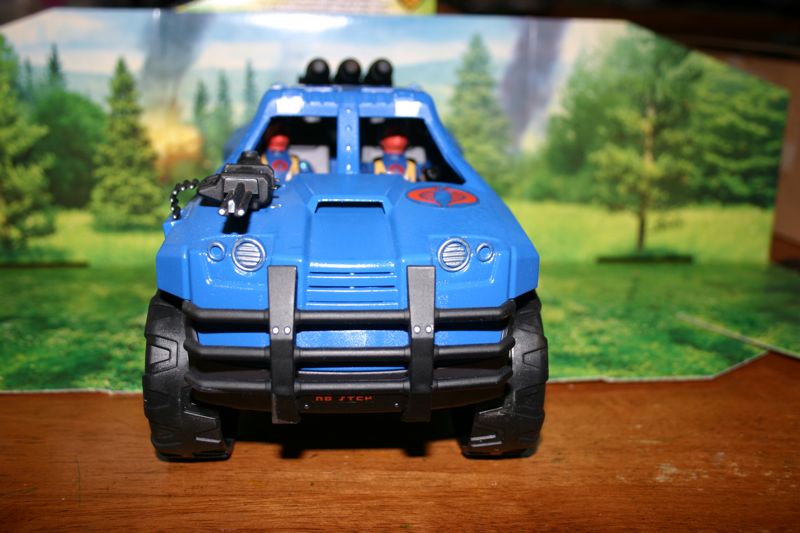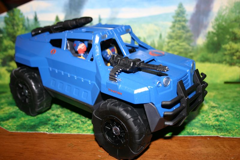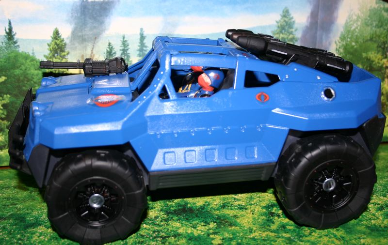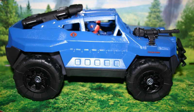 The BOA is the next generation mobile missile vehicle in the Cobra vehicle line-up. It is designed to have more range, punch, and defense capabilities than the Stinger Jeep. It is based on a humvee frame with enhanced over ground clearance, engine performance, and armor. Armaments include a hood mounted .50 cal machine gun which is triggered by push button controls on the steering wheel, and 3 fire and forget surface to air/land missiles which are aimed and launched by the passenger with the assistance of a glove box mounted targeting computer system with HUD display that projects on the windshield in front of him. This vehicle paired with the 5 passenger Constrictor and next generation HISS tanks will be the backbone of Cobra's ground forces for the next decade.