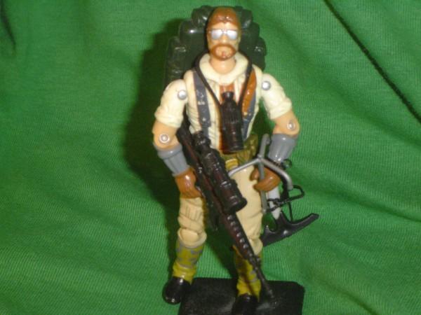 This guy kinda just came together and looked great right off the jump. He was just too cool to paint. I like especially how monkey wrench's head sits high, so he looks a little taller than others. The concept of Cliff comes from a book i read called Solo Faces about a solitary mountain climber, but in this case he's a dead shot who plucks em away from atop a mountain. Most of his missions are solitary, but Cliff isn't a recluse, he's a friendly sort. Although he's still not the kind of guy you could really put your finger on, even when you've known him for years you still feel like you really don't know him.