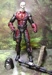 I had the Destro and Copperhead pieces left over and had no idea what to do with them until I saw the machine gun laying around. I tried using the Cobra Flint head but it was a shame to hide it with the helmet. I really like the Montezuma head on this guy.