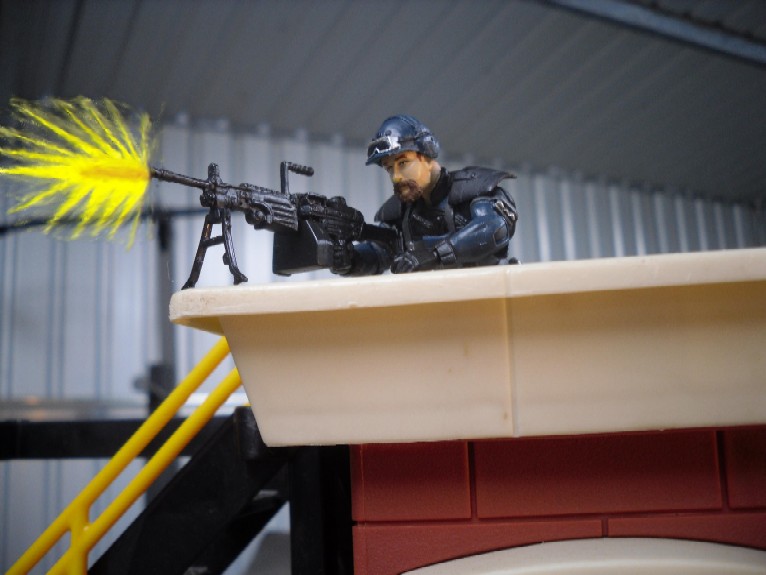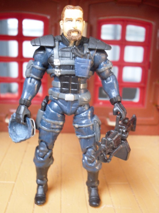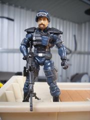 Another custom for my U.A.F. (Urban Attack Force). I had already made all the other figures and needed one more to fill the spot on my Night Ops Humvee which is my U.A.F's ride. I had seen this Wolverine figure in the store and figured it would make a decent S.W.A.T torso. I dremeled out the head to make the helmet which turned out OK and made the goatee out of green stuff. He is quite a short figure when you stand him next to the others but very strong looking hence the code name Bull. I will eventually sit down and make a file card for him.