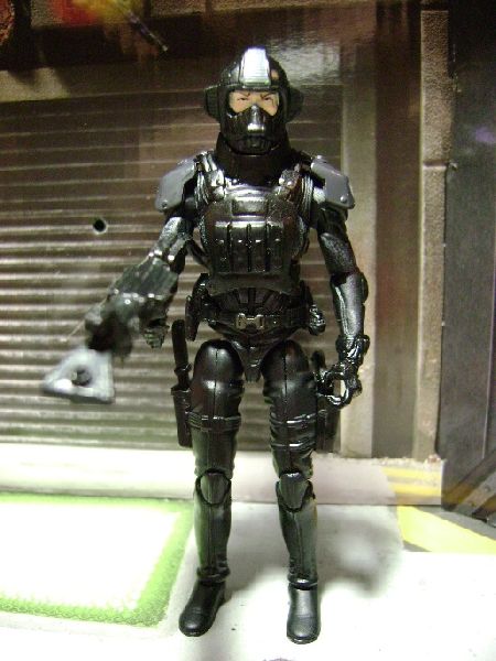 I have seen other customs using Copperhead's head for an Airtight custom and I thought it looked great. I was going to use Barbecue's body like I've seen before but I thought the reactive armor would look good. At the last minute I thought I would add Flash's chest plate and I think it finished Airtight off well. I decided to hook up Airtight's rifle to the chest plate so he wouldn't need a back pack anymore.