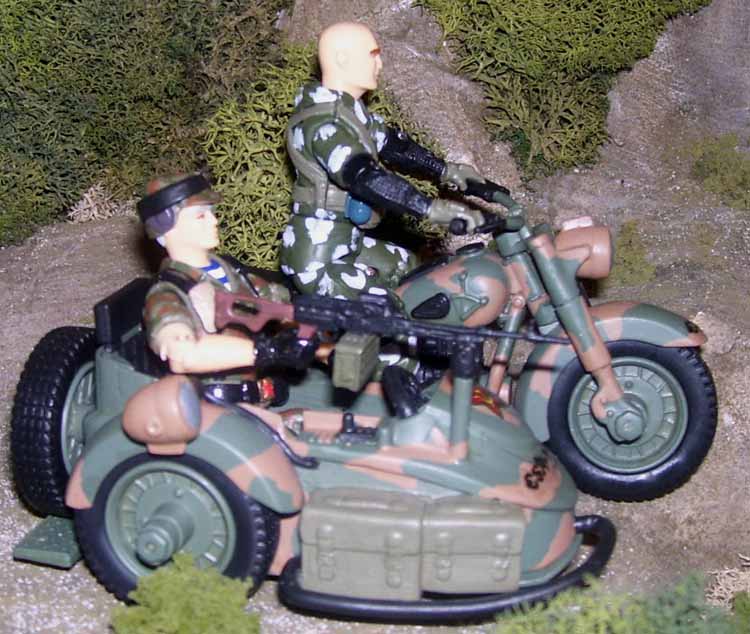 Main Chassis: Indiana Jones The Last Crusade German motorcycle, G.I. JOE Rise Of Cobra Snarler side car.