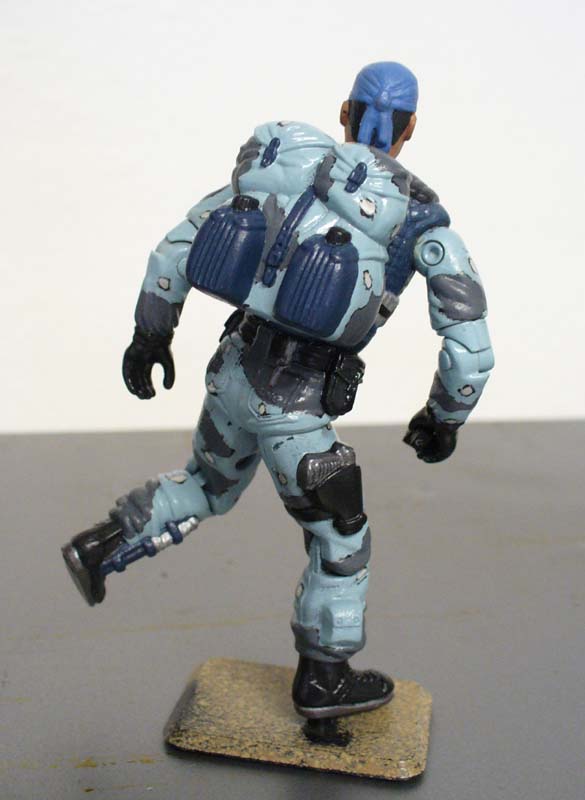 The color scheme I initially had in mind was a blue vest set against a light grey/white/dark grey camo on the rest of the uniforms. However, I was out of light grey spray paint to use as a base, so I went with the sky blue instead. Grey would have worked better, but this is okay.