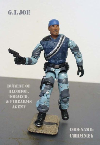 Having only made one ARAH custom in 2009, I wanted to do at least one more before the year ends. The only one I did before this was "Engraver", a Secret Service agent. I decided to do another federal law enforcement character for the second ARAH figure. "Chimney" is a name I've thought of using before and seemed to fit the character, despite the lack of a brick red color scheme. The character is an Bureau of Alcohol Tobacco and Firearms agent assigned to the GI Joe team.