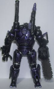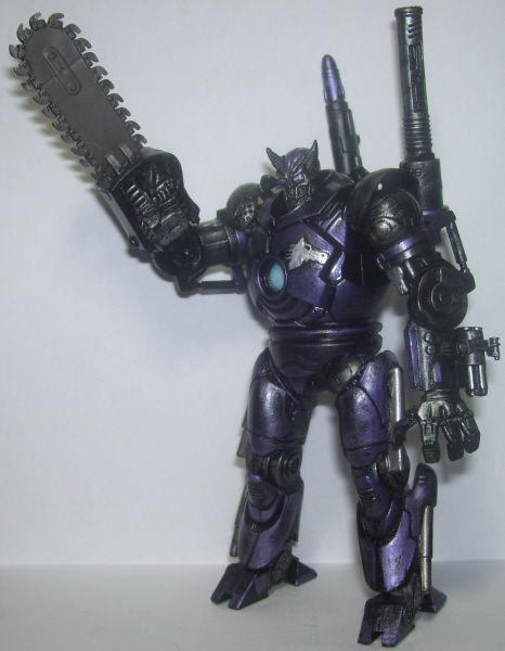 The Iron Horse's armaments include an arm mounted diamond toothed chainsaw designed to chew up and spit out vault doors and armoured cars alike, the shoulder mounted fire and forget missile eliminates any airborne opposition, the Pulse cannon (stolen from a M.A.R.S. convoy in Kazakstan) is wired directly into the visual scanner to allow instant aiming, and a small but effective mini-gun is attached to the left wrist. The mini-gun was a last minute addition specified by the Dark Horse just so he could have the shell spitting effects that have been seen in the movies.