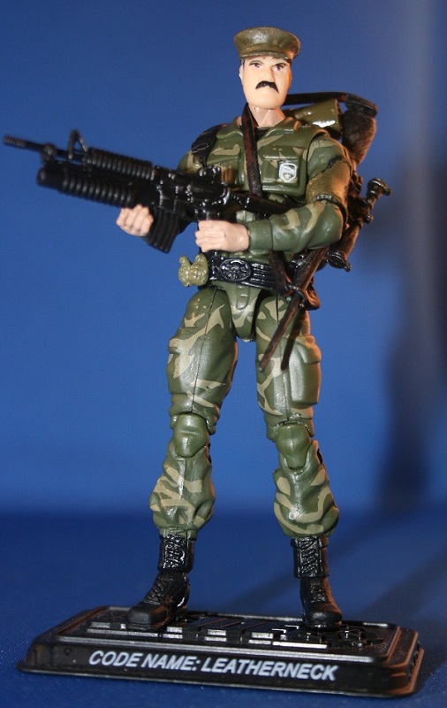 While it is true that the paint scheme does not match the original figure, I don't really care. He is much closer to the IDW comic series Leatherneck, who is a sniper and part of an assault team made up of himself, Recondo, Scarlett, and Stalker.