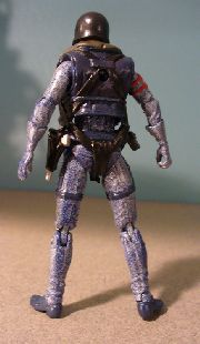 What color for the uniform? This one took some mulling over. Black? Nah. That's what the character usually wears. Red? No. Then it would just look like a female Wild Weasel. Plain old boring blue? Yep- the glasses and the feminine legs would sell it as The Baroness more than any color. I considered red for the flight harness, but figured it would look too Spider-Man with a red/blue color scheme. Instead I went with dark grey-blue for the harness, throwing some red on the belt buckle. The helmet needed to be black to keep it Baroness-like.