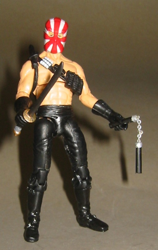 I really wanted to give him both a removable mask and the ability to swap his ponytail for loose hair. I managed it, but the long hair needs more work before I want to show it to anyone. Banzai is one of those tail end characters that's never really been used. Part of that is the color scheme, so I ditched the neon purple. No idea what a Rising Sun Ninja is, so I tried to give that some basis in reality by painting the mask the way I did. Moving the sheath for his sword to his back was inspired both by his card art and practicality. The setup of the original figure would make it totally impossible for him to draw his sword (or knife, or whatever that was on his chest.
