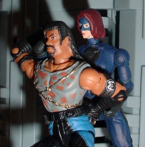Equipment: Black Rose carries a metal collapsable staff. She has pouches which she carries throwing stars, ground spikes, and other equipment.