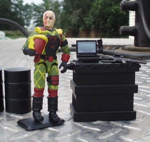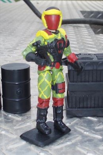Formerly CEO of a Multinational Thrash-and-burn company, Cesspool was horribly scarred during an industrial accident while giving the EPA a tour of one of his Facilities. Placing the Blame on Environmentalists and the Government, he joined cobra with the Determination to make the world as ugly and nasty as he is. Initially he was given command over modified Toxo-Vipers to engage in Chemical warfare attacks, But now, placed in a command position within the Python Patrol, he takes his first hand knowledge of High Level dirty dealing and corporate subterfuge to the Battlefield, coordinating strikes against specified industrial targets to weaken key corporate and political targets to ensure Cobra a quick, and cheap, 'buyout'.