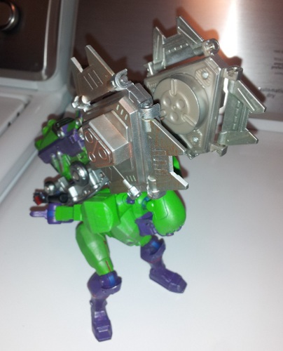 Mindbender took one of the Constructicon hand guns and backwards engineered it into a demolition pack that a person, usually a BAT, could use just as effectively as the cumbersome and fuel inefficient Mole drillers. Unlocking the morphing matrix of the technology he found a device that samples, excavates and converts matter at the designated rate it is programmed. A magnificent tool that doubles as a weapon. A sub-setting for it takes the minerals it excavates and makes munitions for it's primary dual shell mortar. What he did not foresee was the tactile link the machinery develops over time, the initial Tele-Viper that was his aide during this project has begun had some unsettling side effects and is currently undergoing augmentations to subside the effects. Also BATs that have used the Bonecrusher or Devastator Pack have re-designated themselves as CON-Bats and changed their own appearance.