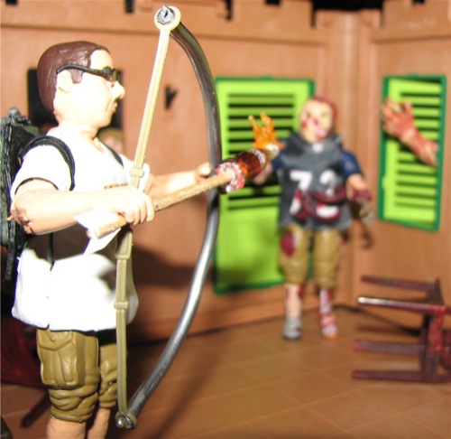 As for the JoeCustoms gang, we got splintered off pretty quickly. Most of the guys tried to find guns or chainsaws. We never saw them again. I'm a customizer, so I customized whatever I could find around me. Those 12" vehicles really pack a punch. The bow is affective for long range, but if I come across an actual compound bow I need to grab it. The guys keep joking that I should add a boxing glove trick arrow.