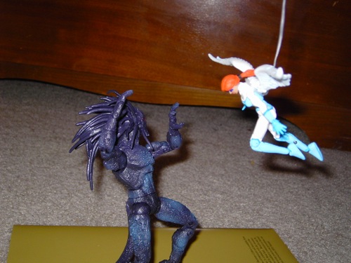 Angela possesses a pair of large, avian wings that allow her to fly for long distances. Her bones are hollow to better accommodate this ability. Later on she developed the ability to generate a powerful golden light used to blind her enemies. With a great deal of concentration, Angela can focus this light into either bladed weapons or projectiles, though to do so weakens her severely for some time.