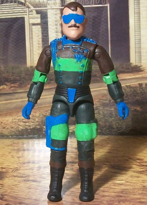 Drawing the Slaughter head left me with few possibilities for the type of figure this was going to be, so I decided to just go forward and do a dress uniform for Slaughter's Marauders. Everything went smooth until I tried to put a sealer coat on the figure and the blue and light green paints started to run. An emergency touch up got the Sarge looking presentable, so here he is, the Leader of Slaughter's Marauders all cleaned up!