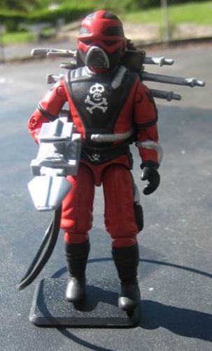 When I was brainstorming for the SWF, I had an idea that the Red Shadows needed some more to fill out their ranks. What better than to use a technical trooper to combat them. Techno Viper is one of my favorite Cobra troopers so I decided on him. I took a pic of the figure and photoshopped a paint pattern to match how the Red Shadows looked. Figuring out the helmet was the tricky part to make it look right. Instead of printing off a decal, I hand drew the logo on his chest as well as the mini one on his belt buckle.