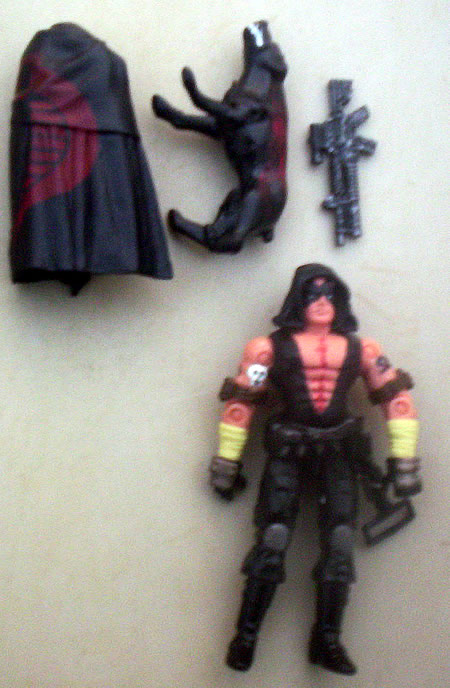 Spike used to be a professional wrestler. But, when his family was killed he became weak. Then Zartan recruited him and his Doberman Bloodbath. Now he uses wrestling moves against his Joe enemy and he loves watching his dog rip people apart..