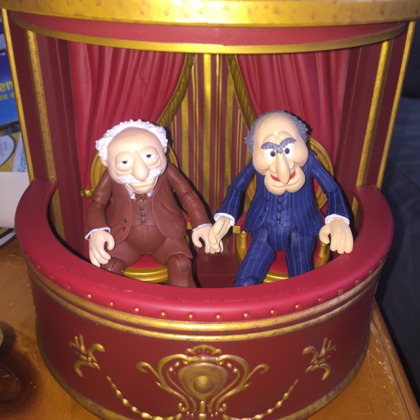 Now for the main reason I got the whole wave. These guys' preorder sold out pretty fast. And for good reason. The figures are really well done for crotchety old men (present company excluded, hi joemichaels70) plus they come with their screen accurate balcony seats to mock my every move.