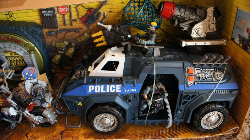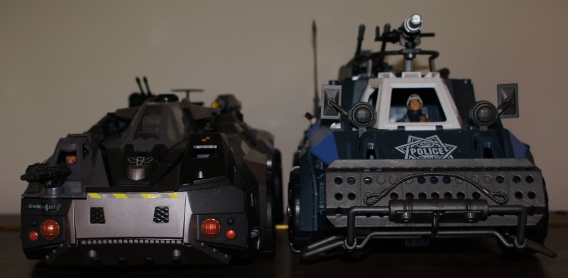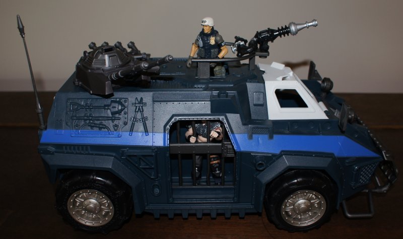 What company would make a riot-control vehicle for 3-3/4 figures? Who would make a boombox accessory that turns into a minigun? Who would release a P-61 night fighter? A two-headed pirate zombie? Animals with guns strapped to them? Vikings? Cavemen? And who releases BUILDINGS as playsets these days? Who comes up with these ideas?