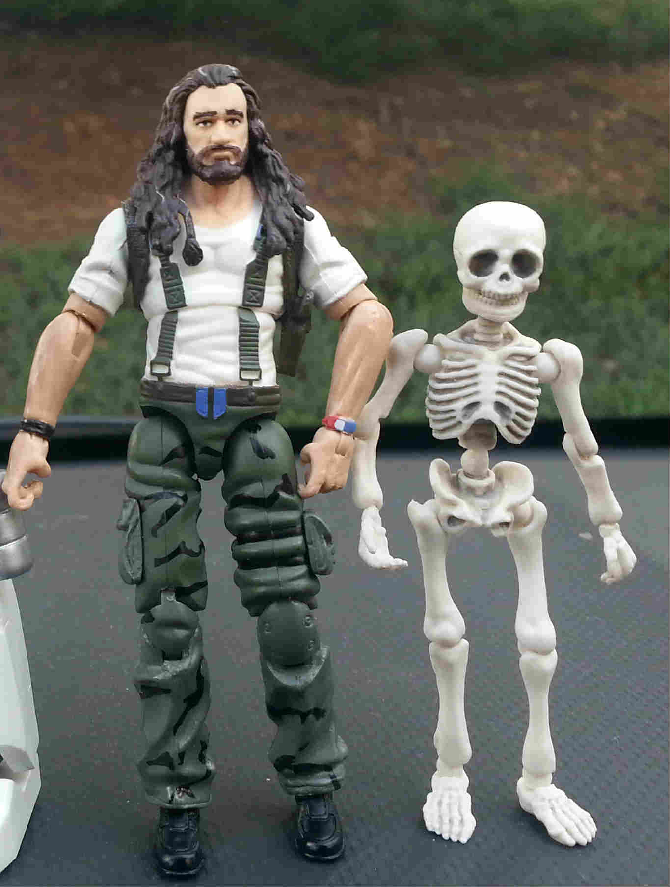 this skeleton line is a separate thing by them that is made in 1:18th scale (though again their normal scale is for 12"), though I have seen it listed as being 1:20 scale as well meaning its slightly smaller than 1:18. I got the sets awhile back myself and the stuff looks pretty good, but the skeleton itself is about 3 1/2" at best. I am CONSTANTLY searching for instruments that work in the 1:18th scale and have bought so many things unsure of the exact size and getting guitars that are just too big enough to not work. I constantly message sellers on ebay asking for length measurments on guitars, this is for keychains and Christmas ornaments and all sorts of crap.