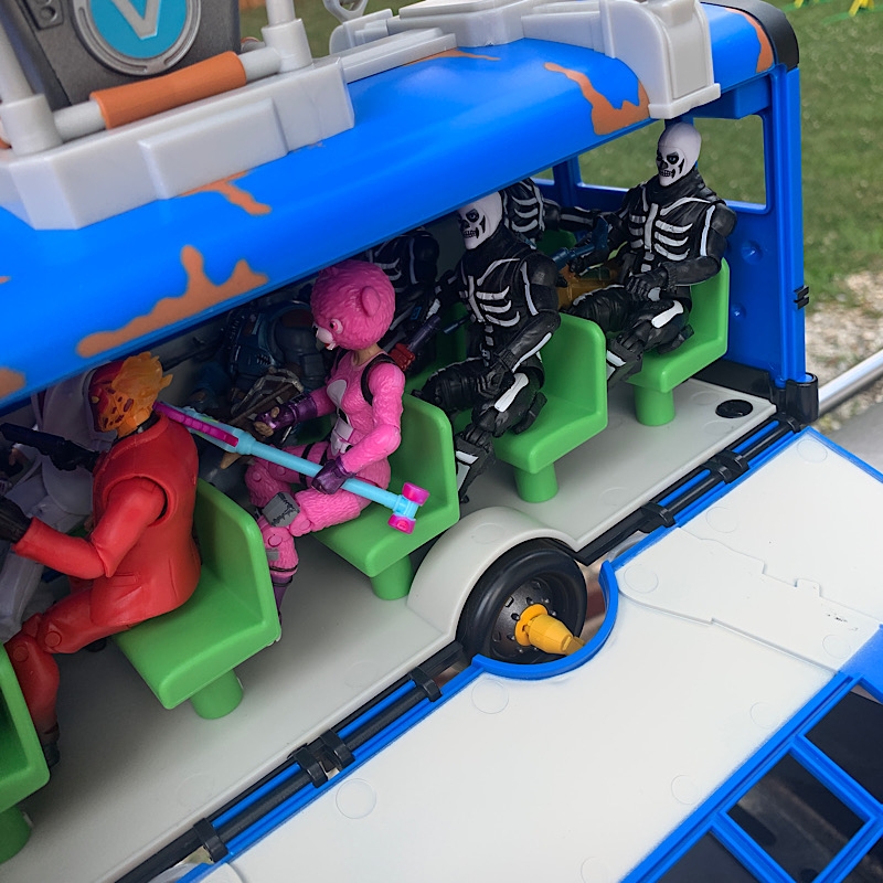 It is pretty neat and I probably pick up another to customize if it ever makes it to clearance. The big play feature is the lights and sounds “party” with the flashing disco ball, blue hot air flame, along with pumping music and bus sounds.
