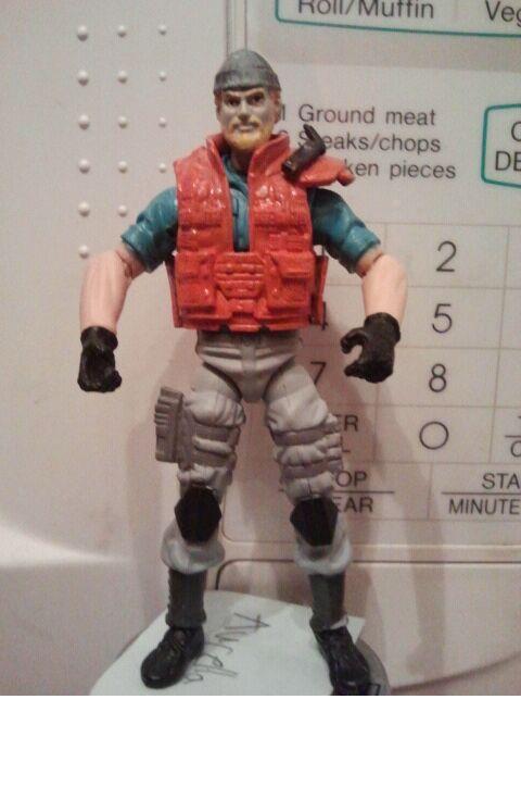 The figure itself is an approximation of the character it's supposed to be. It's got gray pants, a blue shirt, a life-vest and the right color helmet.