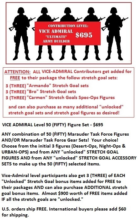 Example: You are a $100 Captain level participant. We hit several of the stretch goals and you want to add 2 (TWO) specific stretch goal sets to your order. Just add an additional $30 (2 x $15) to your contribution and then provide the details of what you want when we ask you in the Kickstarter survey. Again, NO ADDITIONAL shipping charges on stretch goal items.