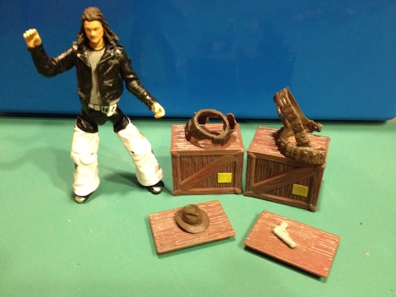 Cast in flexible resin/plastic, these belts/bandoliers are amazing! So well done! I don't know the origin of the gun belt, but it's already in play … keep an eye out for the Blind Pull GP 2013 to be revealed. I believe the bandolier is from the Retaliation Cobra Commander, and it is an incredible cast, and I love it in brown. WOOKIE PRESENTATION! Then we've got a classic fedora. Probably ZombieGuide's, as he misses his old fedora. Finally, a pistol … and I'm sure if we were on Antique Roadshow, some expert would know a ton more about the origin, use, and taste of such a weapon, but, alas, I am but a Sputnik, and have no further insight. But it's KickAss.