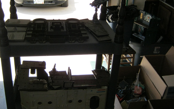 finally, this is what it all looks like, put away for the day -- without dumping everything that i've just sorted back into the giant totes, it takes up a LOT of room!