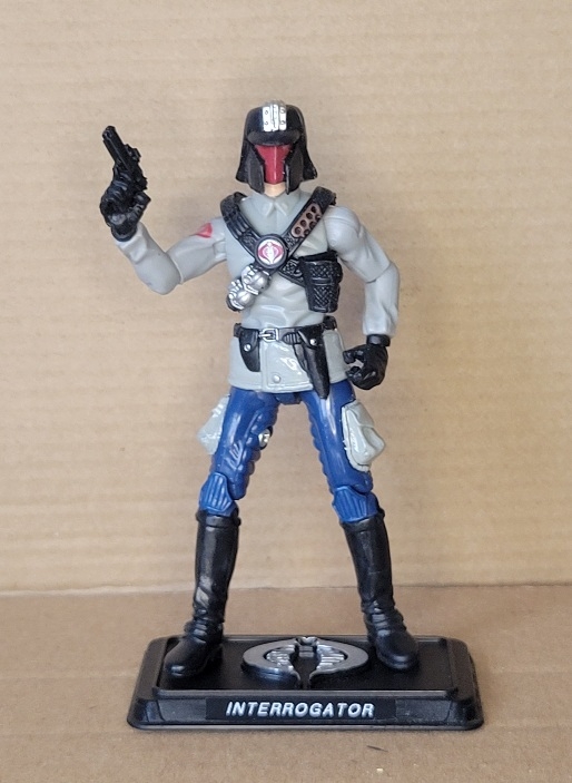 Flint uses Rise of Cobra MP legs, a Sgt. Stone torso, a DTC Hannibal jacket, hands from a Resolute Cobra Commander, wrist shell sleeve from Retaliation Flint, the head from 25th Flint in Cobra disguise and shotgun from Hall of Heroes Flint.