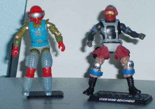 Well, mostly, at least. Thank goodness for Spy Troops: The chest protector is from the back of a Cobra CLAWS bulletproof vest, with a bit of plastic from a JLU Rocket Red armor glued on. The thigh pieces are the shin guards from the Grunt (to Cobra CLAWS) figure.