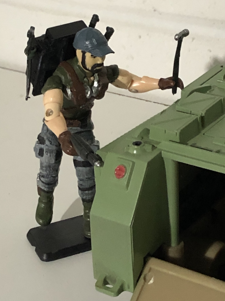 Next up is me! Who doesn’t like having their own action figure! Kinda LBC as it’s mostly marauder with a Joe head and some facial hair. My kids think it’s neat. It has no hair just like dad. That’s a cold glass of root beer too.