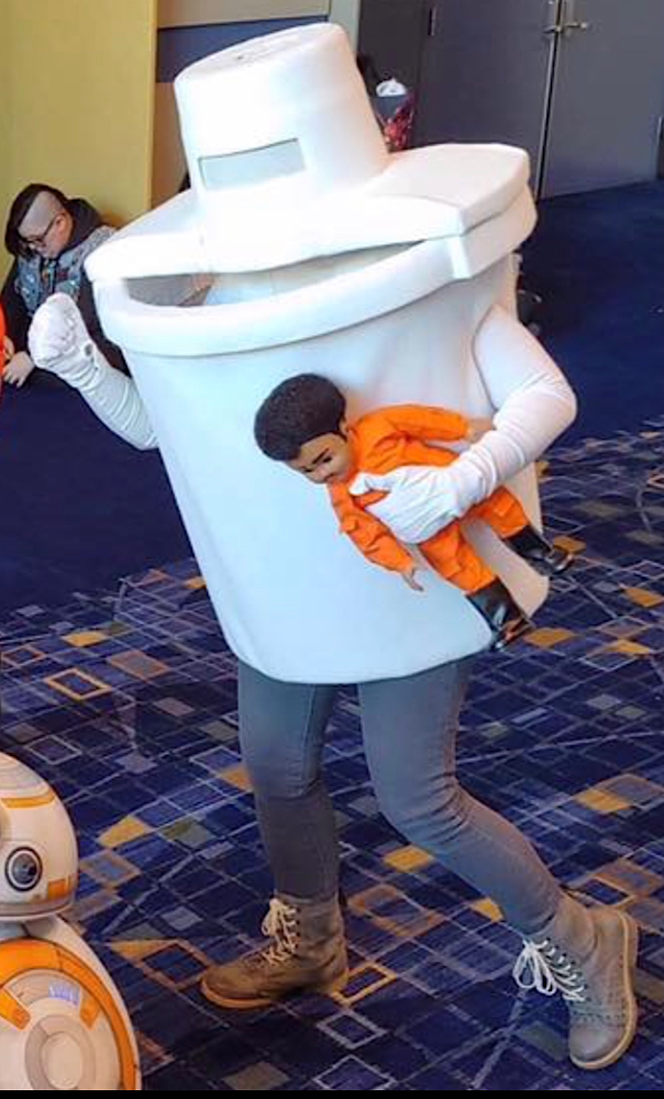 During SDCC there’s an event called the Running of the Hoods based on the character Willrow Hood aka The Ice Cream Man and his evacuation off of Bespin. Hundreds of cosplayers run through the halls dressed as the character clutching onto what we now know, thanks to the Mandolorian, as camtono cases and totally not a 70’s ice cream maker. That got my attention. Then one cosplayer I noticed way back before the plague flipped the switch and dressed as a camtono carrying a baby doll Willrow Hood. That got my respect.