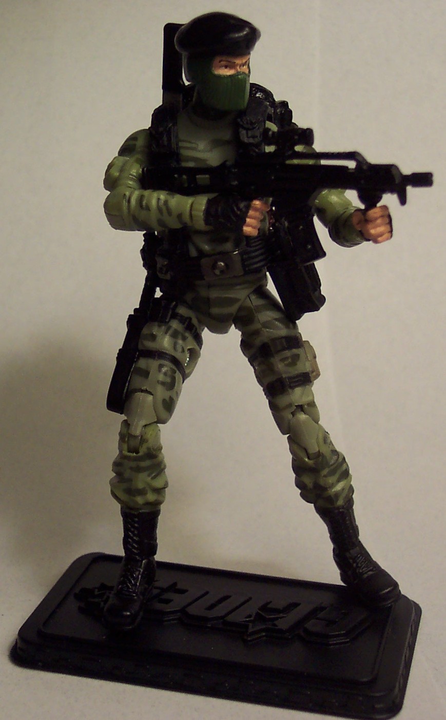 I was messing around with different heads on different bodies and came up with one I really liked. I'm calling him "Merc" for now and I've decided that he's working as a freelance mercenary in my Joe Universe. I still have to come up with a background for this guy. Mostly a LBC, painted the head to match the painted neck, painted the hands with gloves, and added green stuff to stablize the head.