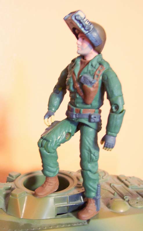 It's also painted with acrylics paints. I now use spray paint to get the "base color" of a figure down, which minimizes chipping. I still use acrylics, but mostly for painting details. Sometimes if working with the rubbery plastics of the NS figures, too. The dark green base color for this figure was an acrylic mix that I doubt I could match again if I repaired the waist.