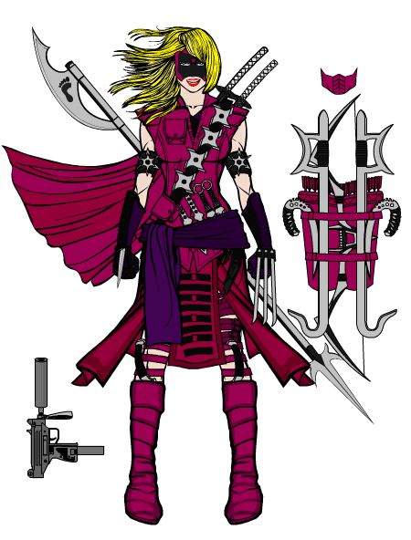 One character I have wanted to get out of my head has been one that has been difficult to describe. A female ninja, deadly and with no scruples. Highly skilled with edged instruments, yet familiar with machine guns and auto-pistols.