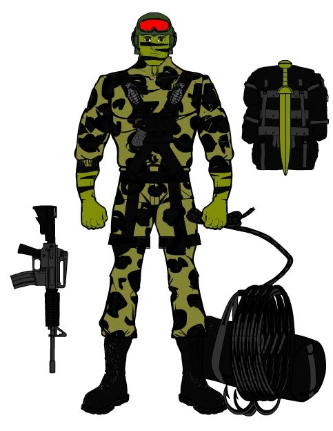 When he had recovered he had gone upstream and discovered the bodies of his fellow Red Ninjas covered by rocks near the falls. At each grave two swords had been thrust into the dirt to serve as make-shift grave markers. Behind the falling water he also found more blood stained weapons inside a sealed canvas bag, including his own. Realizing the JOEs were concerned for the native wildlife disturbing the bodies, they had hid the weapons behind the falls to hide the blood scent . Wanting to equip himself with a small enough blade, he started to take the weapons out of the bag to clean them. With sudden clarity he began to wonder who’s blood it was exactly on the weapons.