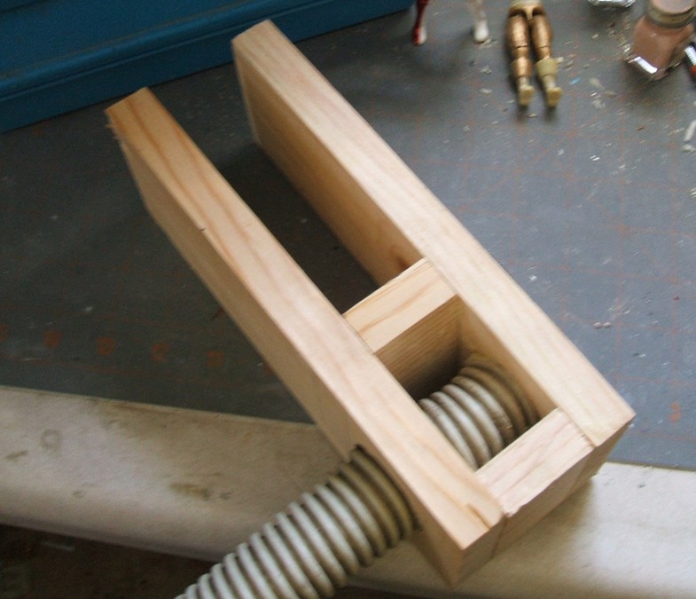 A hose from a small vacuum cleaner runs up through the bottom. One end of the assembly slides onto my workbench and the screen is scrap aluminum window screen. When I want to Dremel a part I just hit the foot switch to the vac and work over the nozzle. Keeps the bench clean, keeps my lungs clean.