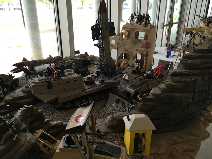 For the first time, the JC traveling display was in the same room as the class. We lined everything up along the outer wall and GI Joe King had his diorama displays along the left wall right when you came in. It was a good setup that got people who weren't there to customize to still drop in to check things out. Plus it allowed us to have more people on hand to help or cover for small breaks. Since we had a first aid kit on hand we also saw a couple of people in search of bandages throughout the day.