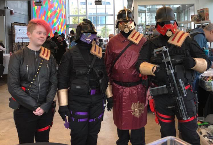 We usually all get in on Friday and help Brian Sauer and the gang finish up the remaining odds and ends before checking into the hotel and regrouping for dinner. This year that meant helping put together and package the exclusive Marauder figures for the show. Bucky did a pretty good job tweaking them to be slightly different. Grimskull had a modified mask and Goldfinch had a gold star decal on her shirt and a touch of paint in her hair. AvacsLab also added a custom cast drone for Goldfinch which had its own decal that JoeCzar and I helped cut and place. The box itself is based on the carded Mexican figures and is pretty sharp looking. I may have cut myself within the first 5 seconds of sitting down to help trying to switch out an xacto blade. I dropped the new blade, it bounced on the table, and stuck in me right under the pinky knuckle.