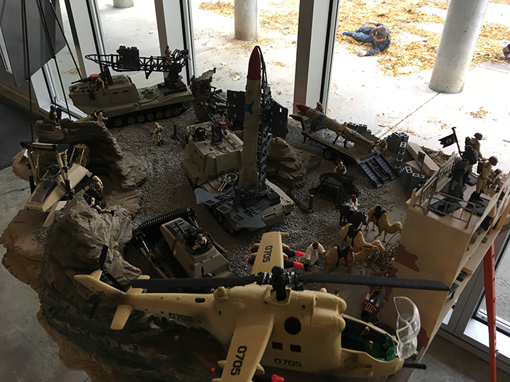 For the first time, the JC traveling display was in the same room as the class. We lined everything up along the outer wall and GI Joe King had his diorama displays along the left wall right when you came in. It was a good setup that got people who weren't there to customize to still drop in to check things out. Plus it allowed us to have more people on hand to help or cover for small breaks. Since we had a first aid kit on hand we also saw a couple of people in search of bandages throughout the day.